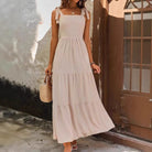 Ladies A-line Dress – Cotton – Sleeveless – Adjustable Straps – Layered Midi Model