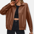 Women's Biker Jacket – PU Leather – Relaxed Fit – Cropped – Zip Closure – Snap Buttons