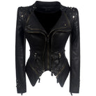 Ladies biker jacket – Slim fit – Leather look – Zipper details – Studs on shoulders