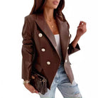 Ladies Blazer – Faux Leather – Tailored – Double Buttoned – Structured Fit – Long Sleeve