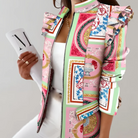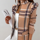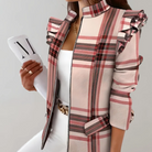 Women's Blazer – Slim Fit – Ruffle Shoulders – Check Pattern – Stand-up Collar