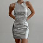 Women's Bodycon Dress – PU Leather – Sleeveless – Mini – Round Neck – Slim Fit