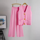 Women's Knitted Cardigan – Relaxed Fit – Deep V-neck – Large Buttons – Pockets