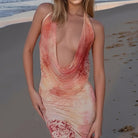 Discover the beautiful Women's Halter Dress – Satin-look – Slim Fit – Backless – Cowl Neck – Floral Print – Ankle-length from Jules Jij. This elegant, luxurious satin-look dress with a deep cowl neck and floral print perfectly accentuates your figure, ideal for evening and formal occasions. A fashionable statement piece.
