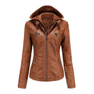 Ladies Jacket – Slim Fit – Faux Leather – Detachable Hood – Zip Pockets