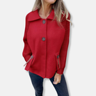 Women's Coat – Relaxed Fit – Knitted Sleeves – Notched Collar – Button Closure – Hip Length
