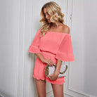 Women's Jumpsuit – Chiffon – Off Shoulder – Wide Sleeves – Elastic Waist – Short