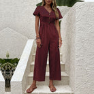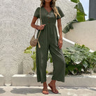 Women's Jumpsuit – Linen Blend – Wide Legs – Short Sleeves – Button Closure – Relaxed Fit