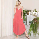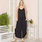 Women's Jumpsuit – Loose Fit – V-Neck Sleeveless – Wide Legs – With Pockets