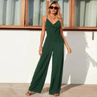 - Design: Sleeveless V-neck, elastic waist, wide legs