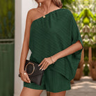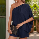 Women's Jumpsuit – One-Shoulder – Textured Fabric – Relaxed Fit – Short Casual Look