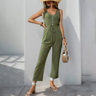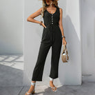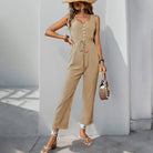Women's Jumpsuit – Relaxed Fit – Sleeveless V-Neck – Textured Fabric – With Waist Belt