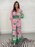 Discover the Women's Jumpsuit – Relaxed Fit – Tie-Dye – Flared Legs – Bell Sleeves – V-Neck, your perfect mix of comfort and style. This trendy jumpsuit with a V-neck and unique tie-dye print is ideal for a relaxed look and offers ultimate wearing comfort. Enjoy the flair of the flared legs and the charming bell sleeves, perfect for any occasion.