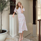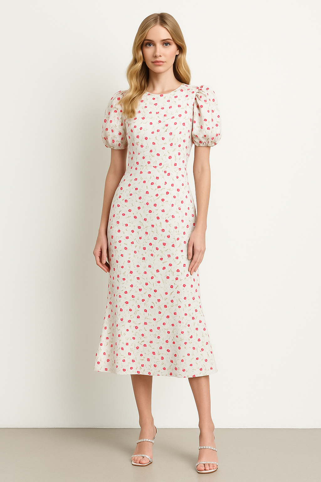 Women's Dress – Slim Fit – Floral Print – Puff Sleeves – Midi – High Waist – Mermaid Model