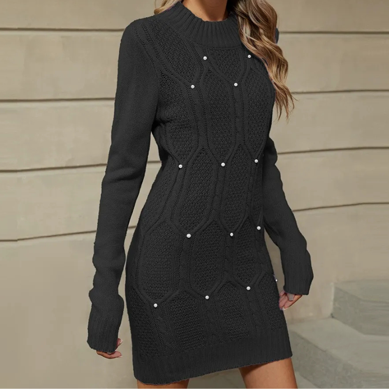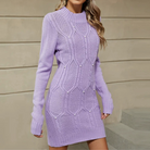 Women's Dress – Slim Fit – Knitted Texture – Turtleneck – Long Sleeves – Mini Length