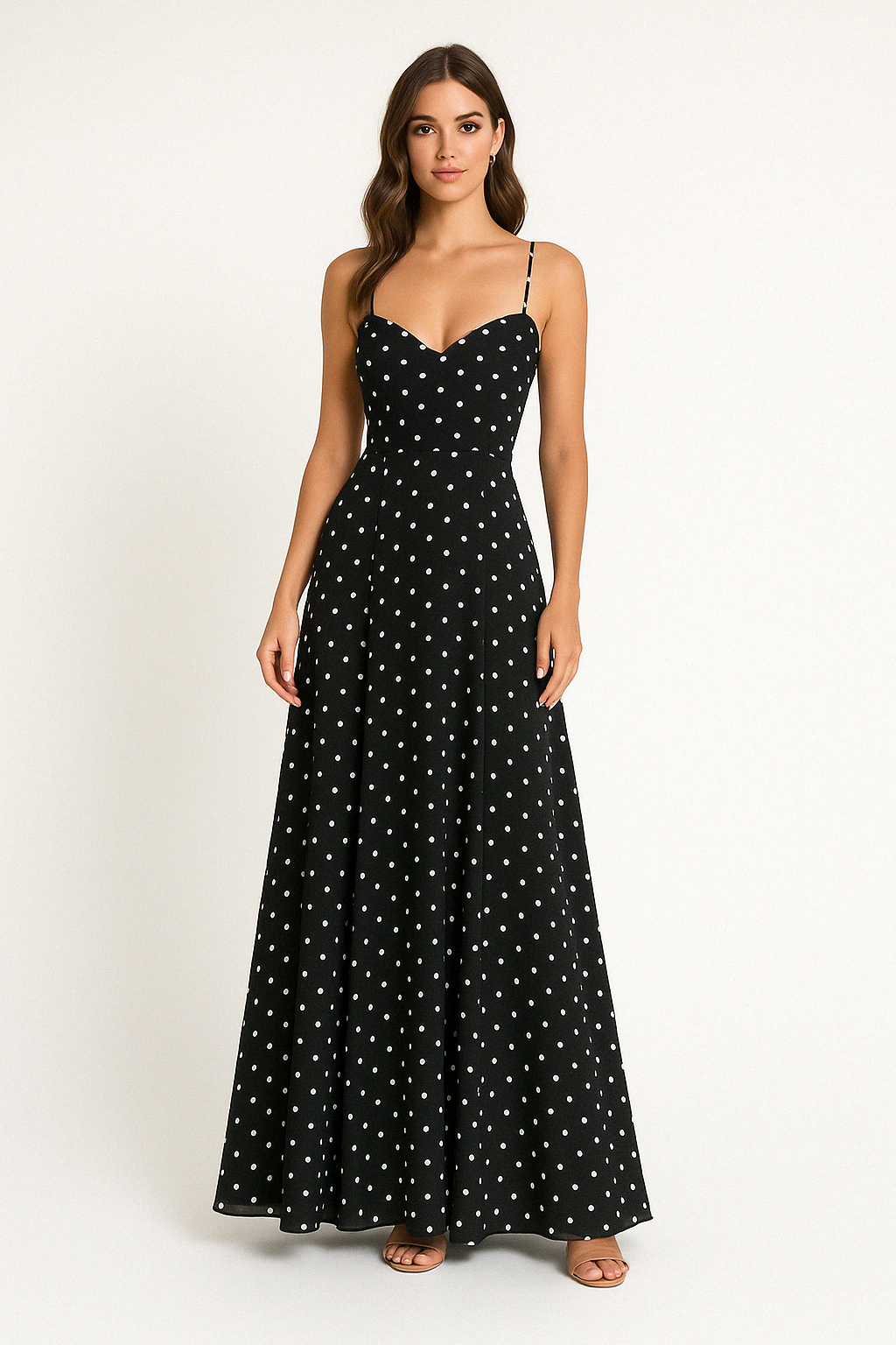 • Design: Slim fit, sweetheart neckline, spaghetti straps, full length, patterned