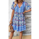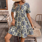 Women's Dress – V-neck – Loose-Fitting – Cotton – Short Sleeve – Animal Print