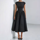 Embrace timeless elegance with the Women's Sleeveless Dress – A-Line – Satin Look – Open Back – Midi Length – Elegant. This refined midi dress with a satin look and flattering A-line silhouette features a stylish open back and a fitted waist, perfect for any special occasion.
