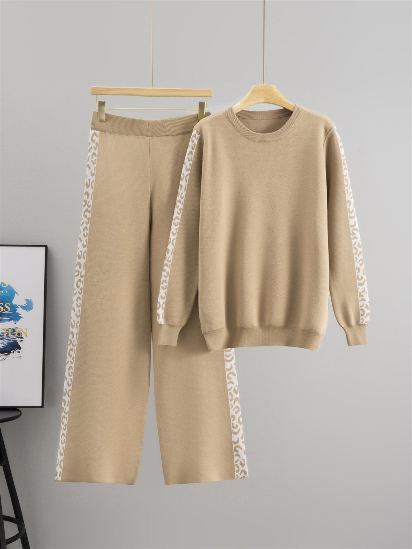 Women's Knit Set – Knitted Loungewear Set – Loose Fit – Wide Leg Pants – Crewneck Top