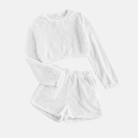 Ladies Loungewear Set – Cropped Top Long Sleeve – High Waist Shorts – Soft Fabric