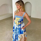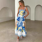 Women's Maxi Dress – A-line Fit – Cotton Blend – Tiered With Print and Thin Straps