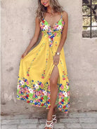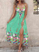 Ladies Maxi Dress – A-line Fit – Spaghetti Straps – V-neck – Floral Print – Slit