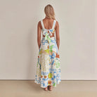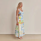 Women's Maxi Dress – A-Line Fit – Spaghetti Straps – V-Neck – Cut-Out Waist – Print Design