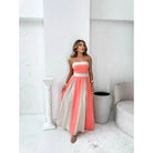 - Design: A-line fit, Color Block, with adjustable spaghetti straps