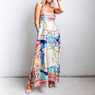 Ladies Maxi Dress – Flowy Fit – High Waist – Spaghetti Straps – Print Design