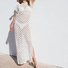 Wear this airy crocheted maxi dress over your swimwear for a chic beach look, or pair it with a slip dress and sandals for a stylish summer outfit.