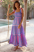 Women's Maxi Dress – Cotton – Shirred Top – Layered Skirt – Adjustable Straps – Striped