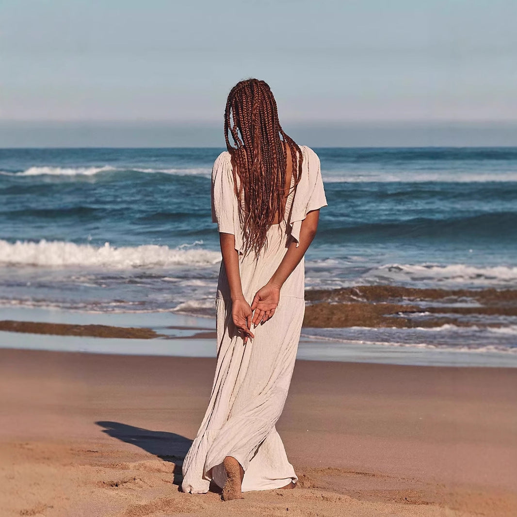 Pair this dress with sandals and a wide sun hat for a relaxed beach look, or wear it with elegant mules and subtle jewelry for a summer evening.