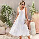 Women's Maxi Dress – Sleeveless A-line – Cotton – U-neck – Button Details – Layered Skirt