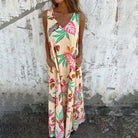 Women's Maxi Dress – Sleeveless – V-Neck – Loose-Fitting – Cotton – Leaf Print