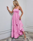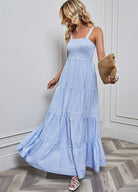Women's Maxi Dress – Smocked Bodice – Layered Skirt – Lightweight Cotton Blend – Spaghetti Straps