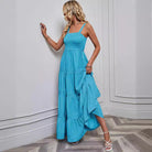 Discover the perfect Women's Maxi Dress with Smocked Bodice, Layered Skirt, Lightweight Cotton Blend and Spaghetti Straps. This elegant, comfortable summer dress is ideal for beach days, garden parties and casual outings. Enjoy the breathable fabric and flattering fit for effortless style.
