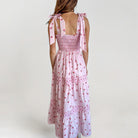 Women's Maxi Dress – Smock Top – Layered Skirt – Floral Print – Adjustable Straps