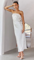 Ladies Maxi Dress – Strapless – Silky Satin – Figure-hugging – Gala Eveningwear