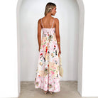 Women's Maxi Dress – A-line Fit – Backless – Spaghetti Straps – Cotton – Floral Print