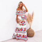 Ladies Maxi Dress – Off-Shoulder – Floral Print – Ruffles – Breathable Cotton Blend