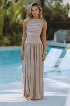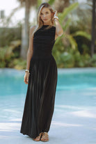 Ladies Maxi Dress – Slim Fit – Sleeveless – Ruched Waist – Airy Fabric