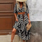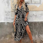 Pair this versatile dress with sandals for a summery look, or wear it with heels and a blazer for a chic evening out. Add minimalist jewelry to let the geometric print stand out.