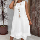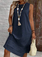 Ladies Midi Dress – Linen-look – Loose-fitting – Sleeveless – Round Neck – Casual