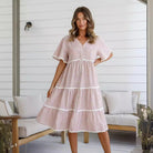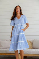Women's Midi Dress – Loose Fit – Cotton – V-Neck – Short Sleeve – Layers with Lace