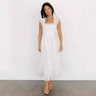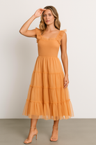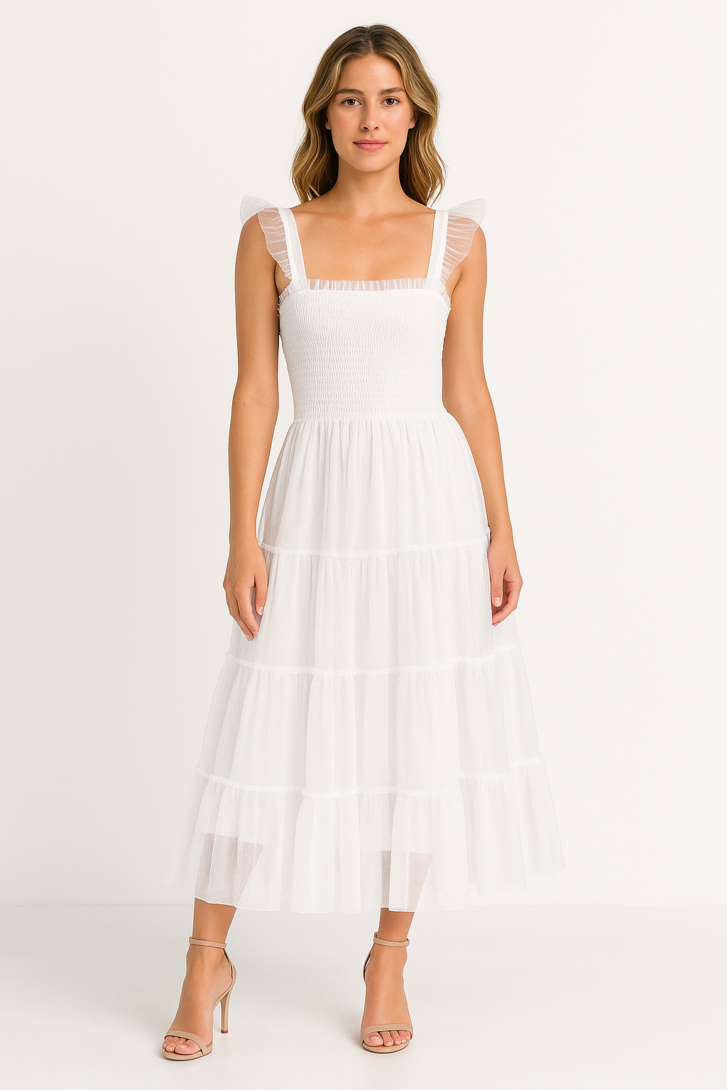 Women's Midi Dress – Smocked Waist – Mesh A-line – Sleeveless with Ruffles – Layered Skirt