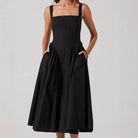 Discover the Women's Midi Dress – A-line Fit – Open Back with Tie – Square Neck – Breezy Fabric. This elegant midi dress with an open back and tie detail offers a flattering A-line fit and is made from a breezy fabric for ultimate comfort. Perfect for summer days.