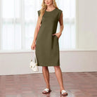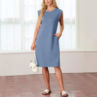 Women's Midi Dress – Sleeveless – Relaxed Fit – Cotton Blend – Round Neck – With Slit and Pockets