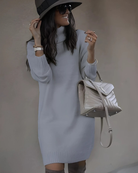 Discover the Women's Mini Dress – Knitted Wool-Cotton – High Turtleneck – Slim Fit – Ribbed Trims. This comfortable, elegant mini dress with a high turtleneck and ribbed trims, made from a soft wool-cotton blend, offers a flattering slim fit. Perfect for versatile, stylish looks.