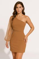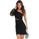 Women's Mini Dress – One Shoulder – Bodycon Fit – Asymmetrical – Sequin Sleeve
