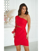 Discover the Women's Mini Dress – One Shoulder – Bodycon Fit – Asymmetric – Sequin Sleeve. This bodycon mini dress with a unique one-shoulder and asymmetric cut, complete with a sparkling sequin sleeve, is perfect for nights out and special occasions. A true statement party dress that combines elegance and a modern look.
